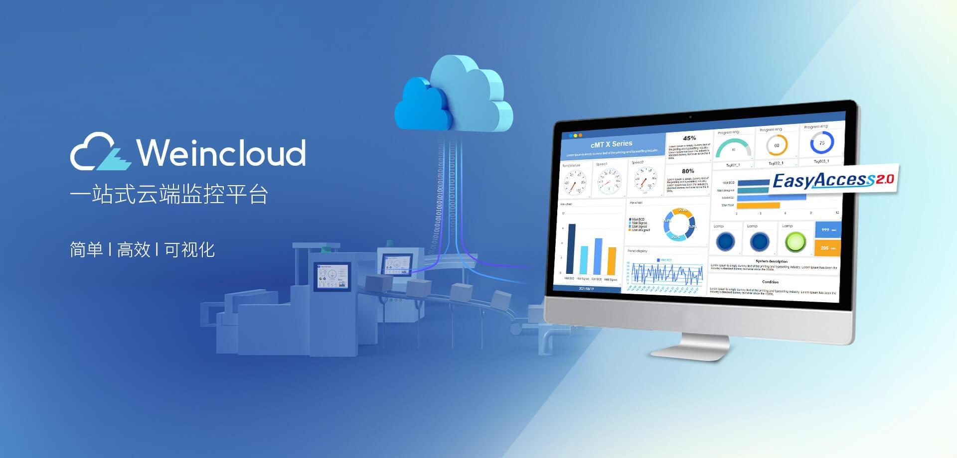 Weincloud 集結EasyAccess2.0遠程監(jiān)控服務及Dashboard云端儀表服務,將設備資料數據上云并以視覺化呈現,協助管理者實時掌控現場產線狀態(tài)。